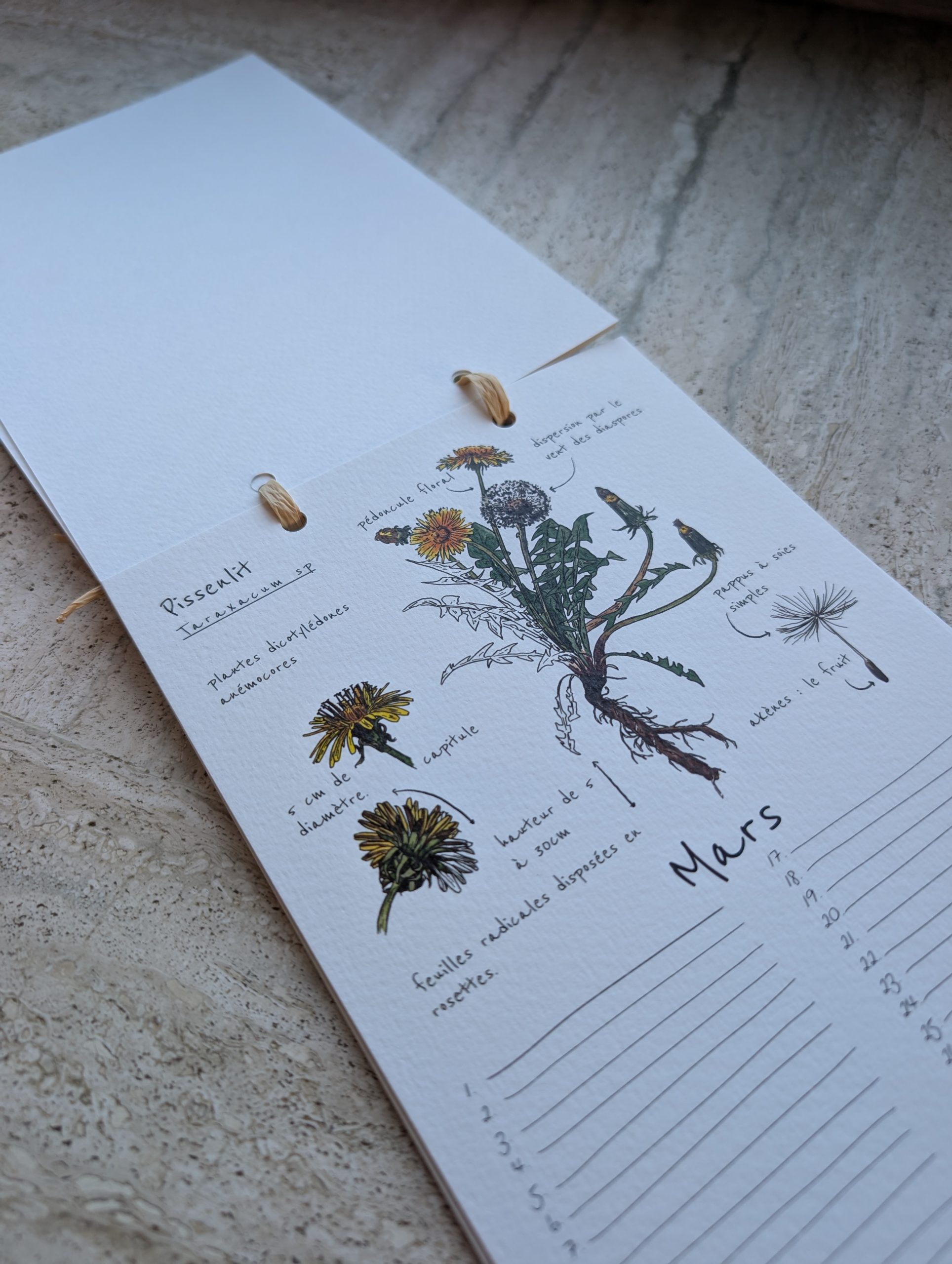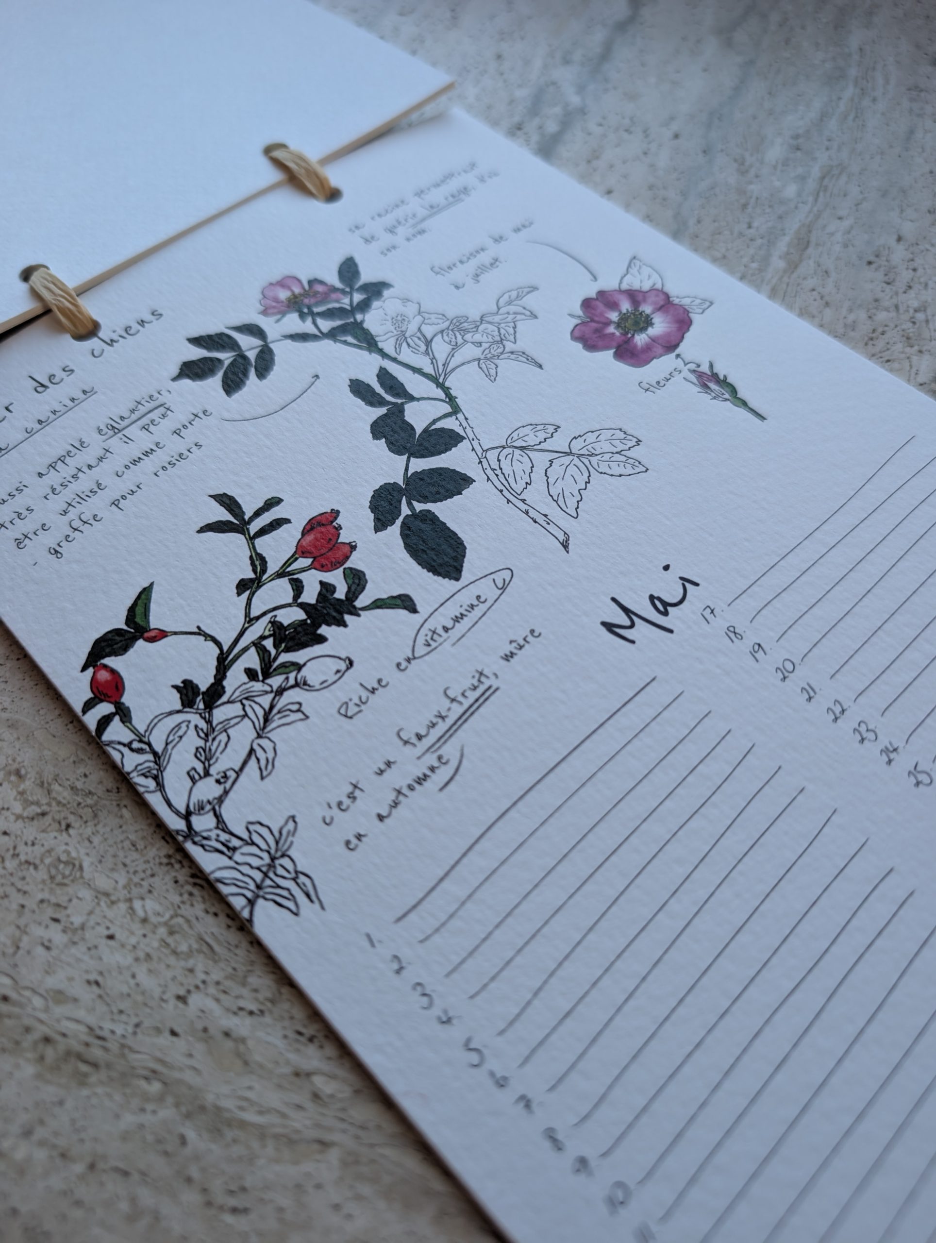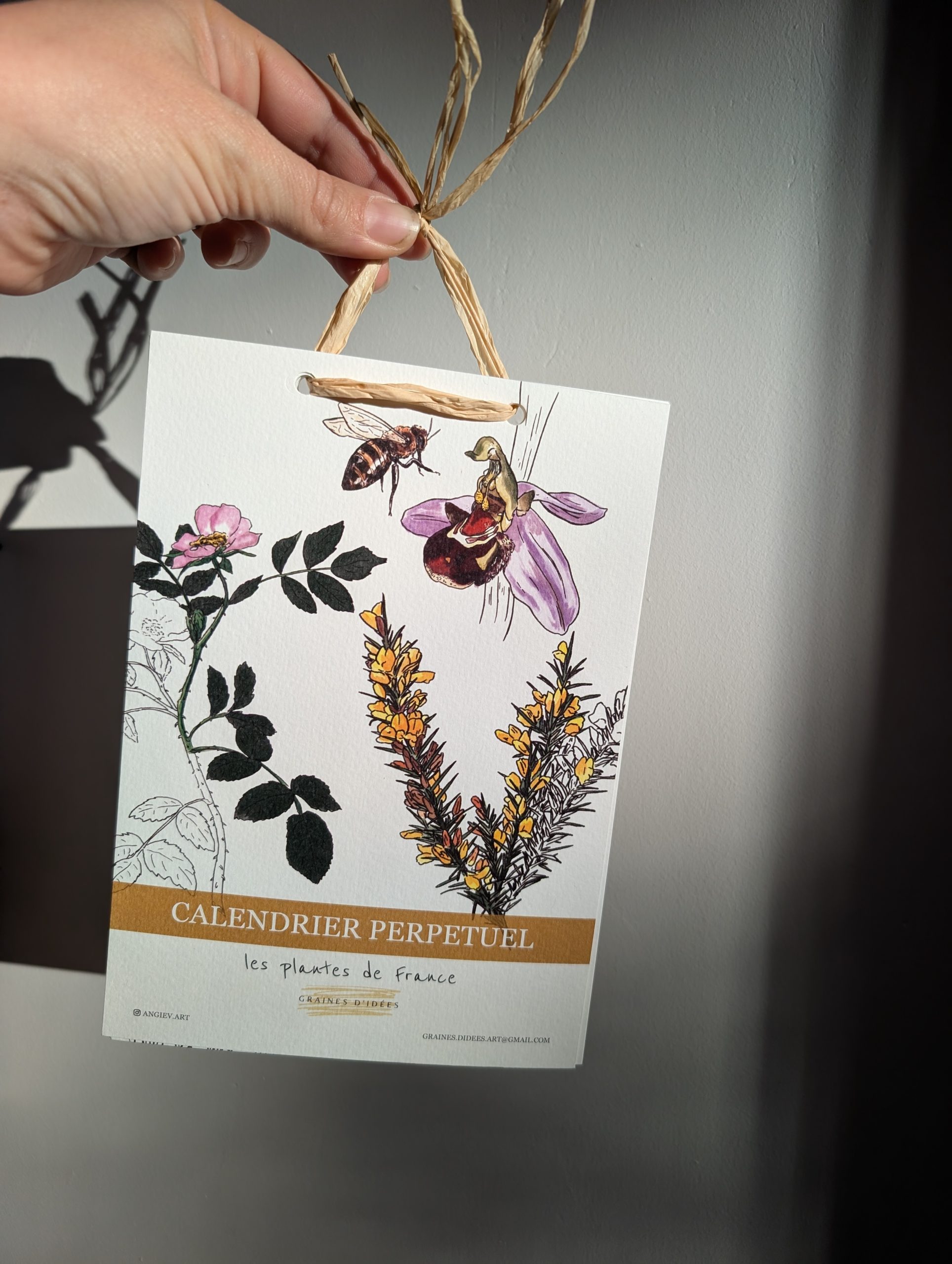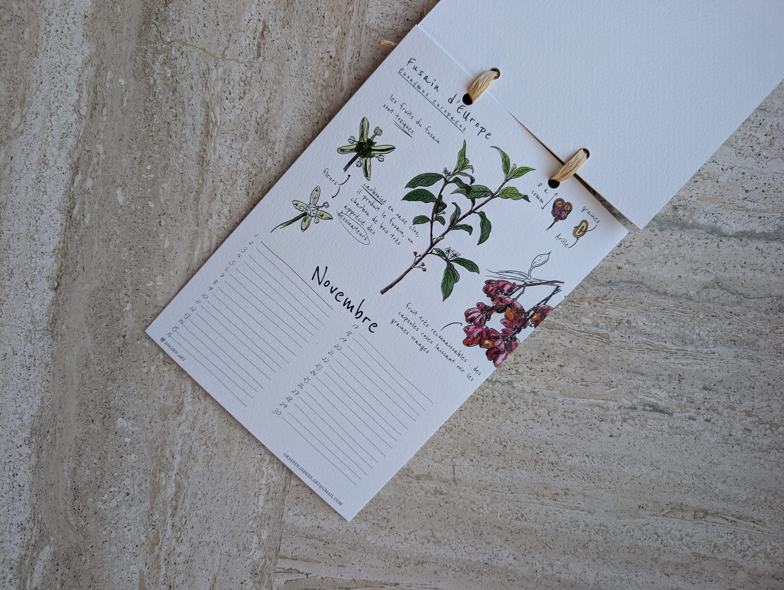 Les calendriers perpétuels sont désignés dans mon atelier, toutes les illustrations sont réalisées à la tablette numérique.