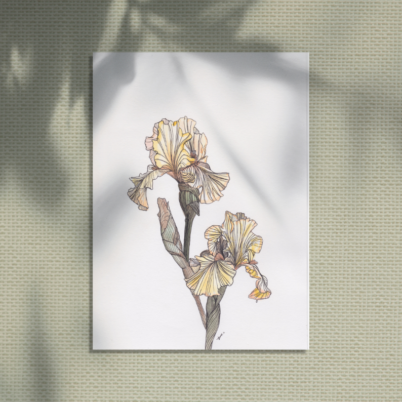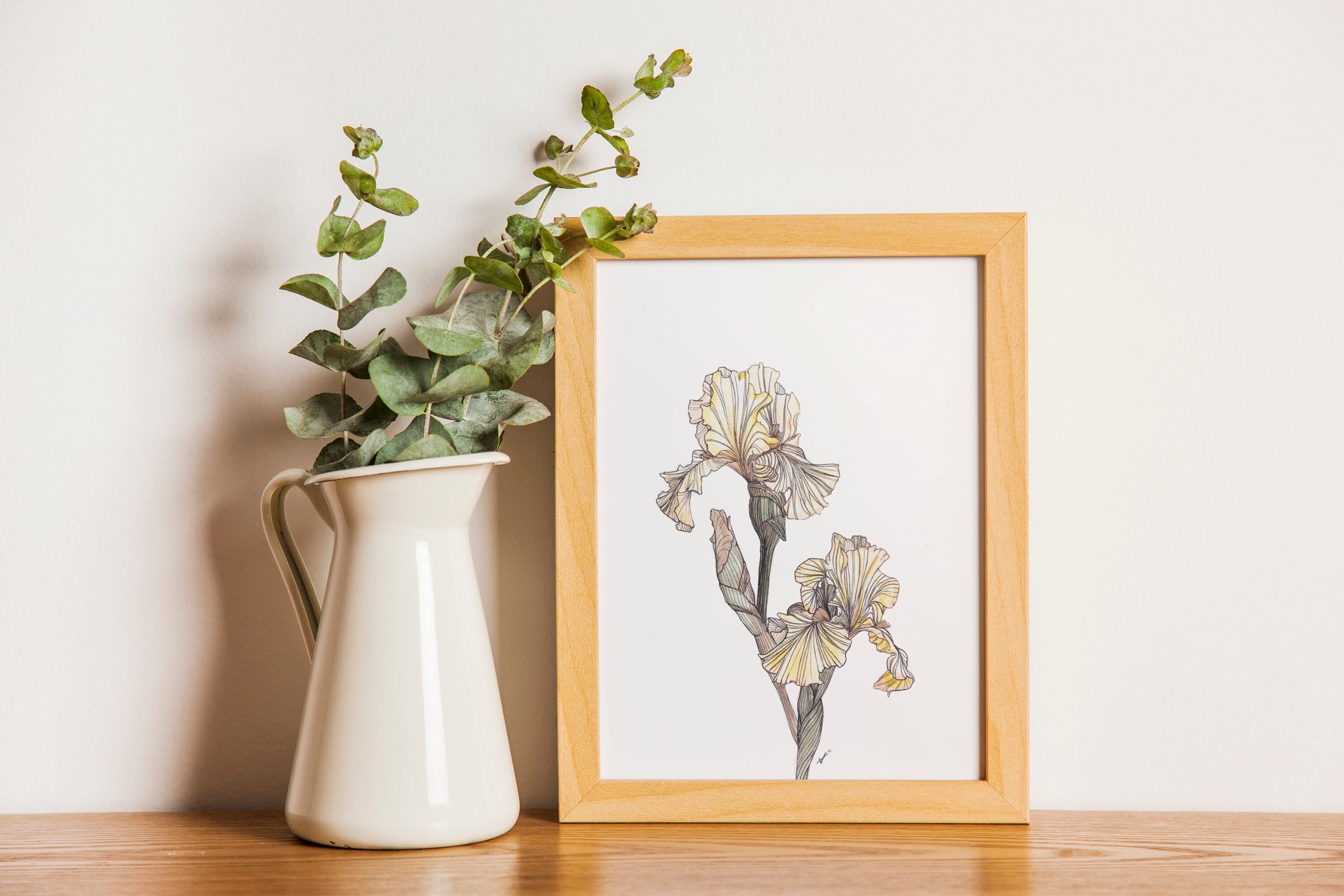 Illustration Botanique – Collection 2021 – Iris – Aquarelle et Encre – Décoration Nature – Réimpressions locales en éditions limitées.
