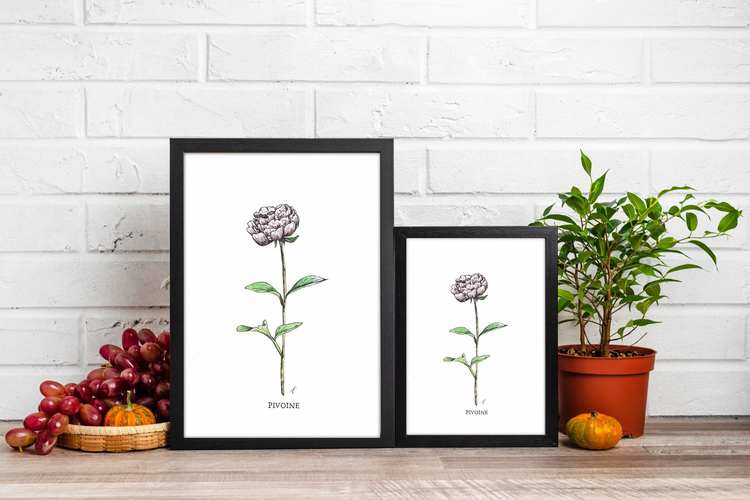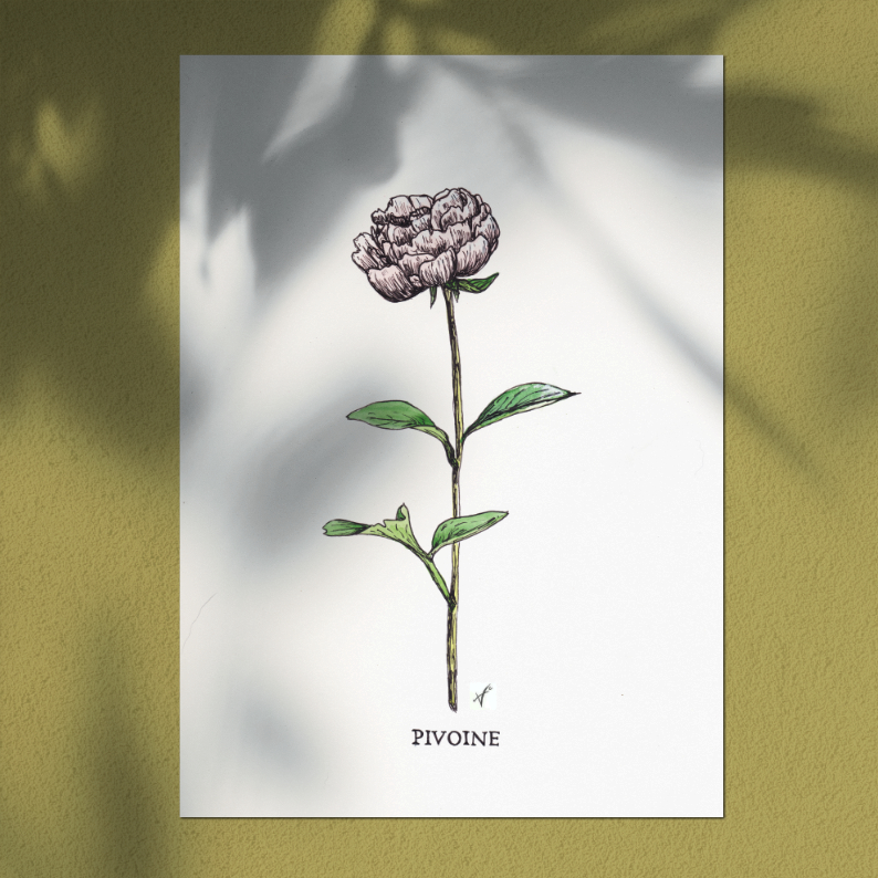 Illustration Botanique Nature Pivoine – Fleurs – Réimpressions locales en éditions limitées.