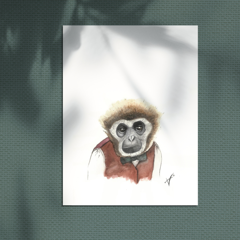 Illustration Animale Nature – Gibbon – Singe – Réimpressions locales en éditions limitées.